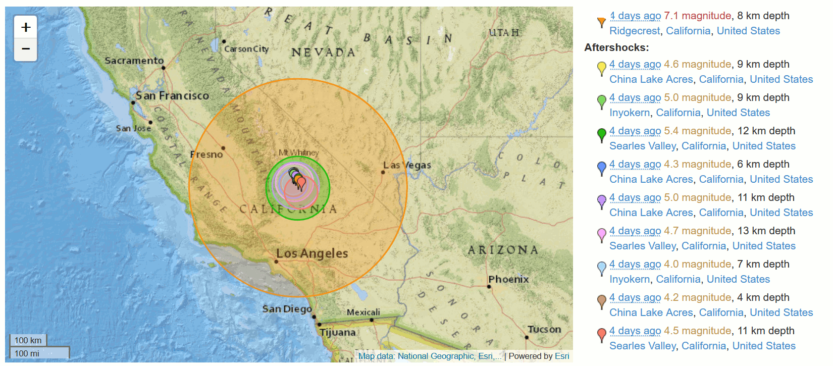 6.7.2019 5:19 (lpc) došlo v Kalifornii, country Ridgecrest, k zemetraseniu magnitudo 7,1. Vážne ranených a mrtvych nehlasia, len materiálne škody. Základňa China Lake bola dočasne uzatvorená.