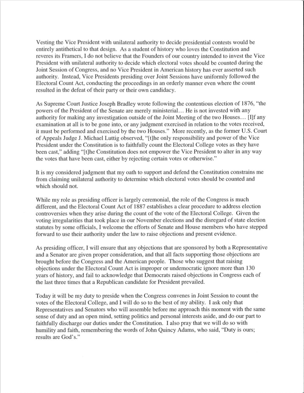 Vydáno na osobním Twitteru Mike Pence dnes 6.1.2021