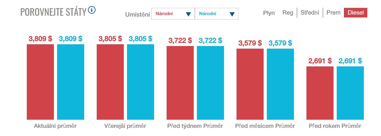 Ceny paliv v USA. Hezký přehledně.