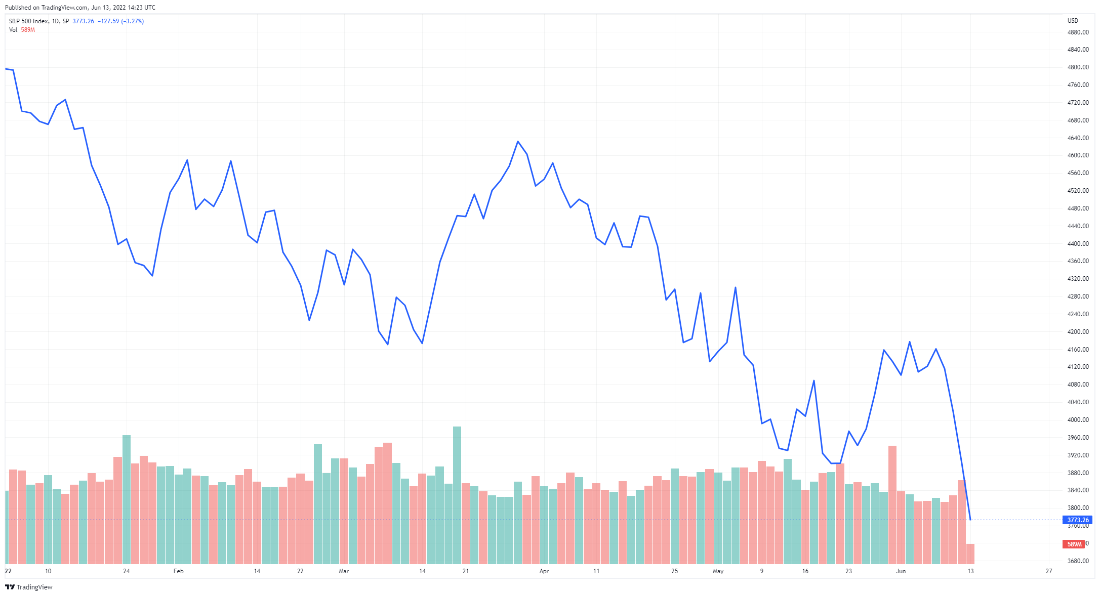 Index S&P 500 dosáhl nového intradenního minima v tomto roce a nejnižší úrovně od března 2021. Oproti svému rekordu poklesl o téměř 21 % a vrátil se do teritoria medvědího trhu poté, co se tam krátce obchodoval na intradenní bázi zhruba před třemi týdny.