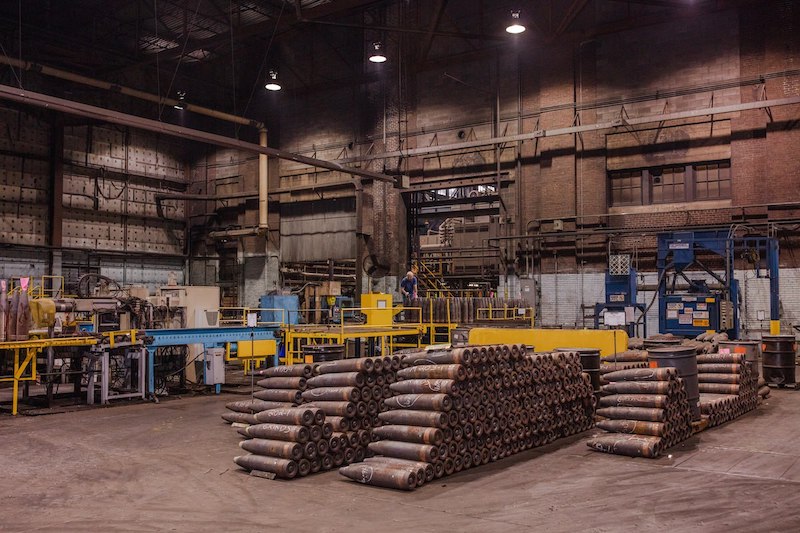 Zbrojovka v Scrantone na výrobu delostreleckých granátov pre Ukrajinu (okrem iného). Pensylvánia, USA, február 2023.