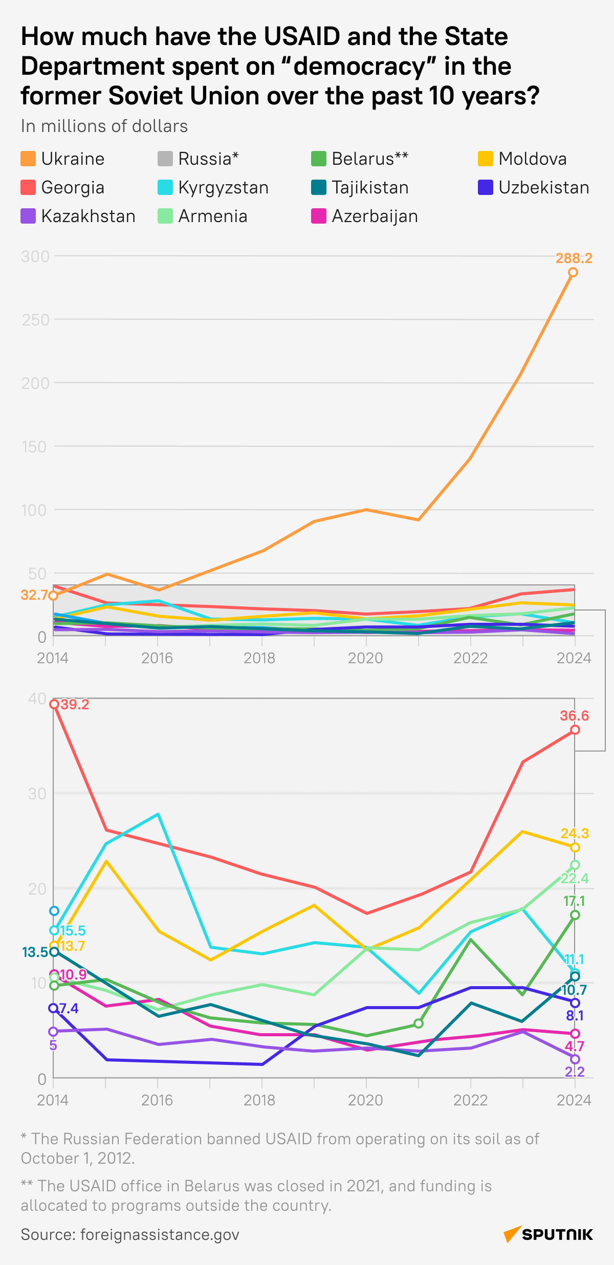 Za posledných 10 rokov USAID poskytla bývalým sovietskym republikám viac ako 2 miliardy dolárov, pričom Ukrajina dostala viac ako 50 % tejto sumy.