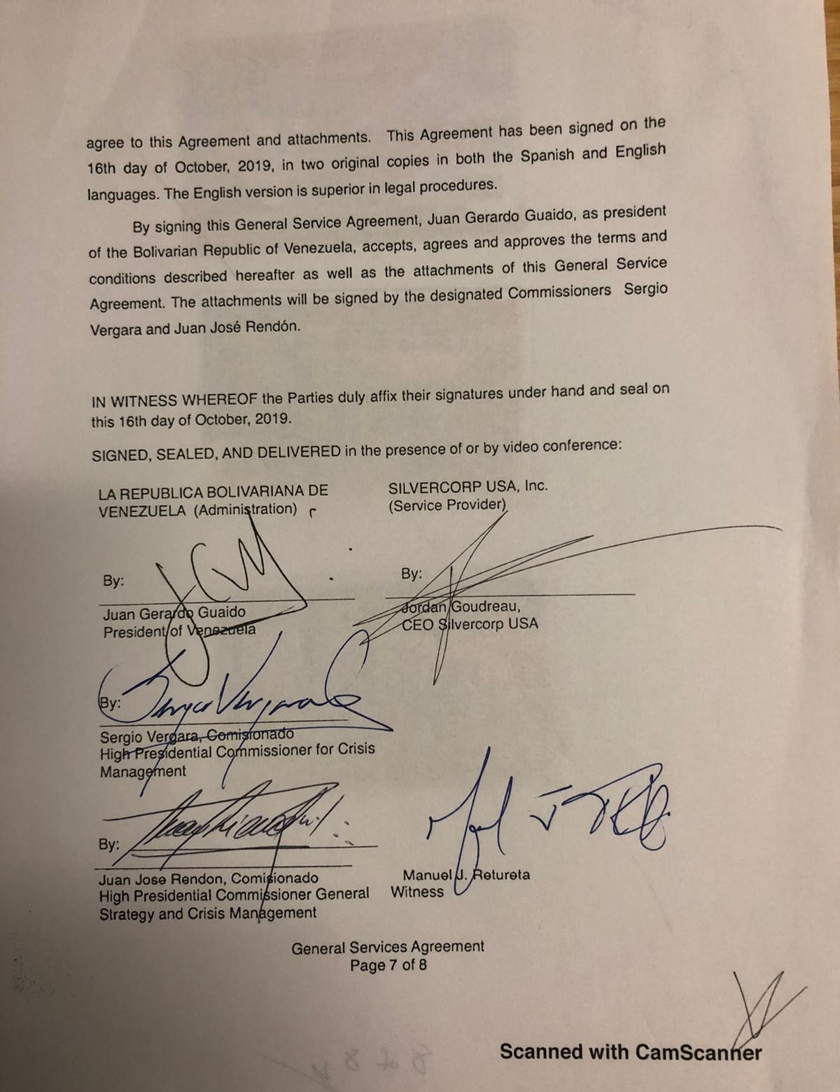 Len o deň skôr vydala spoločnosť Washington Post „Všeobecnú dohodu o službách“ medzi Juanom Guaidom a spoločnosťou Silvercorp USA.