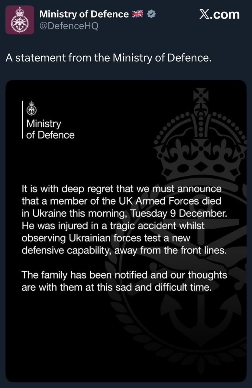Zdroj https://vk.com/wall-123538639_4762411 z 10.12.2025Britský vojak, ktorý zahynul na Ukrajine, bol jedným z výsadkárov vyslaných do tejto krajiny.