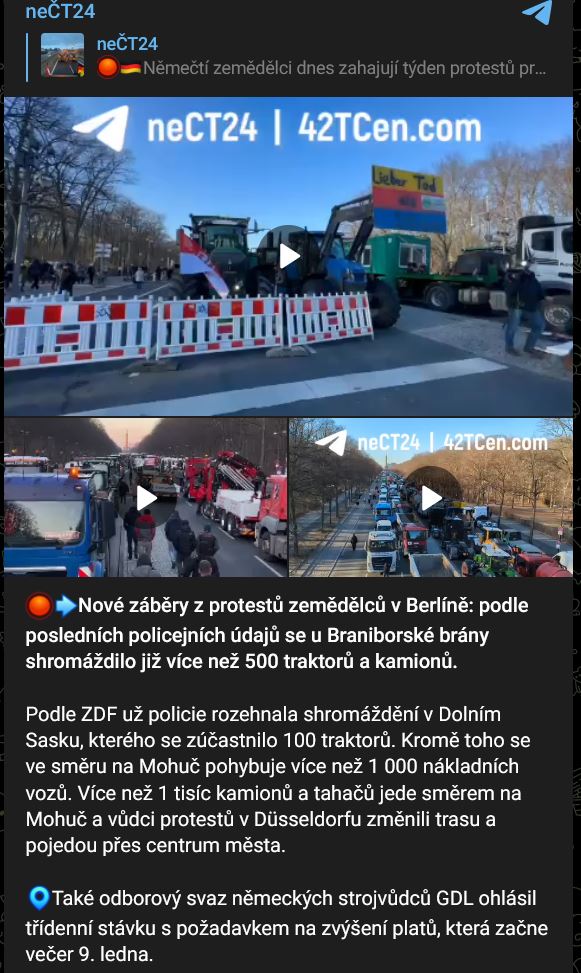 Zdroj https://t.me/neCT24/48332 z 08.01.2024 + kopec ďalších videí na webe