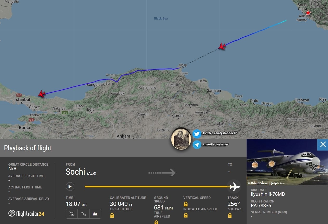 Trasa letu (ako puma napísal = cez Turecko a medzinárodné vody):