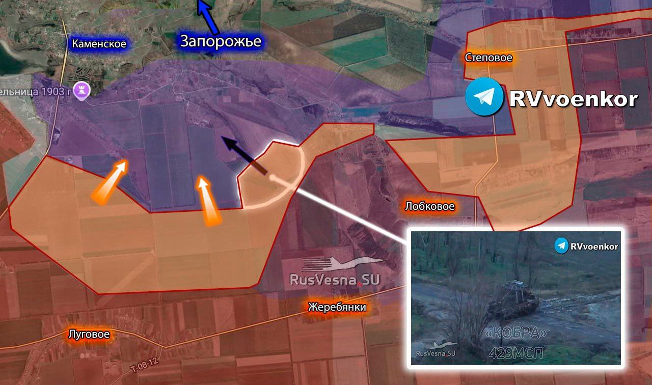 Ruské jednotky aktívne postupujú pri Kamenskom na západnom krídle Záporožského frontu.