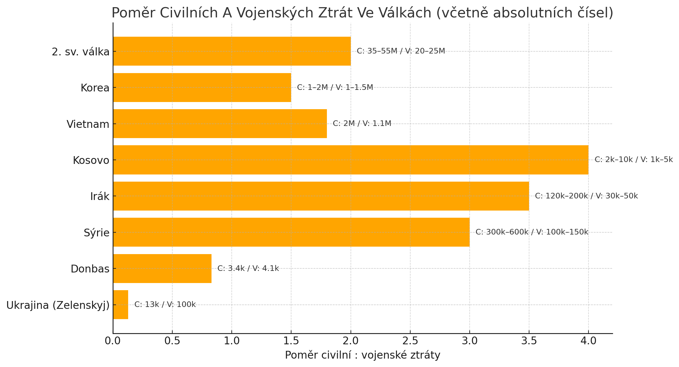 ///1 civilista na 7,7 vojáka podle udajů Zelenského.