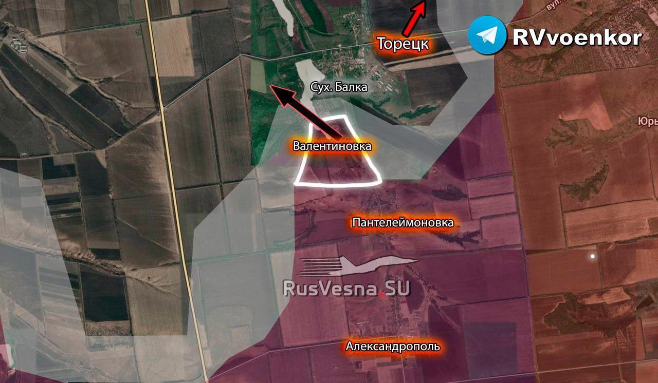 🇷🇺⚔️🇺🇦 Ruská armáda oslobodila Valentynivku, začala útok na Suchoj Balku a postupovala smerom na Konstantinivku.