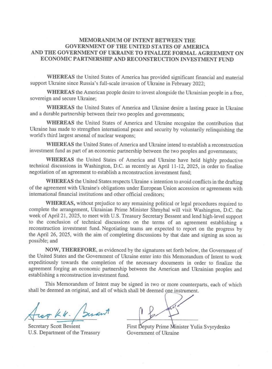 Ukrajinská ministryně hospodářství Julija Svyrydenková informovala ve středu o významném pokroku v dialogu s USA ohledně dohody o nerostných surovinách. Podle jejích slov právníci dokončují „formalizaci dohody“. Američané za administrativy prezidenta Donalda Trumpa chtějí podíl na ukrajinském nerostném bohatství, což má USA kompenzovat pomoc poskytnutou Ukrajině, jež se brání ruské invazi.