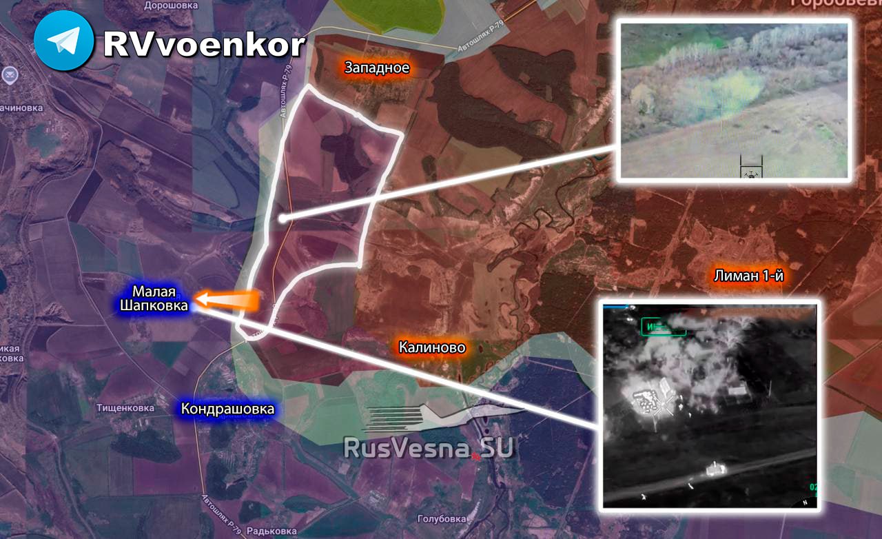 ▪️ Na kupjanskom smere v Charkovskej oblasti ruské vojská pokračujú v prekonávaní obrany AFU, obsadzujú rozsiahle územie južne od nedávno oslobodeného Zapadnoje a dokonca prenikli do Malej Šapkovky.