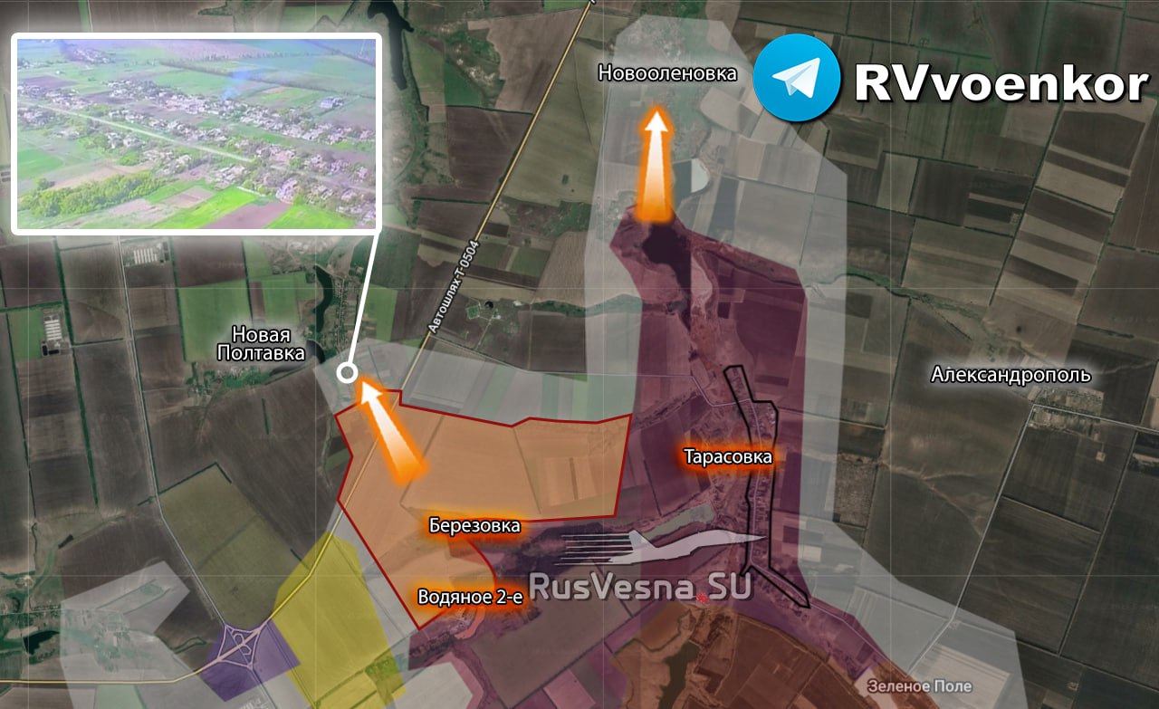 ▪️ Ruská armáda tiež prerazila a útočí na Novú Poltavku.