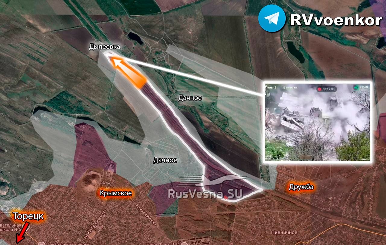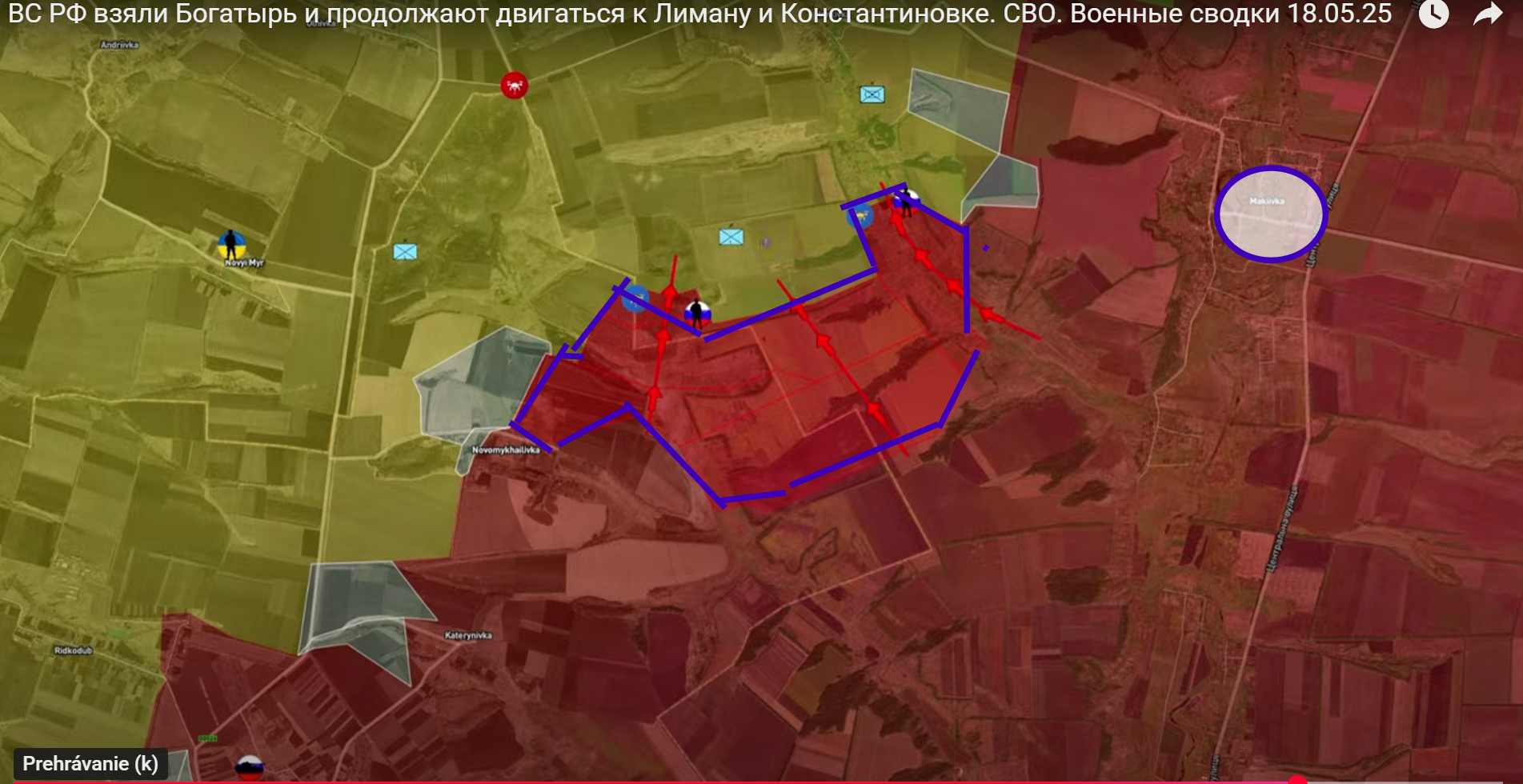 Bogatyr - Odradne. Prišlo k výraznému postupu Rusov cez lesné pásy, zatiaľ označené ako šedá zóna. Spravodajcovia predpokladajú skoré obsadenie Odradneho.