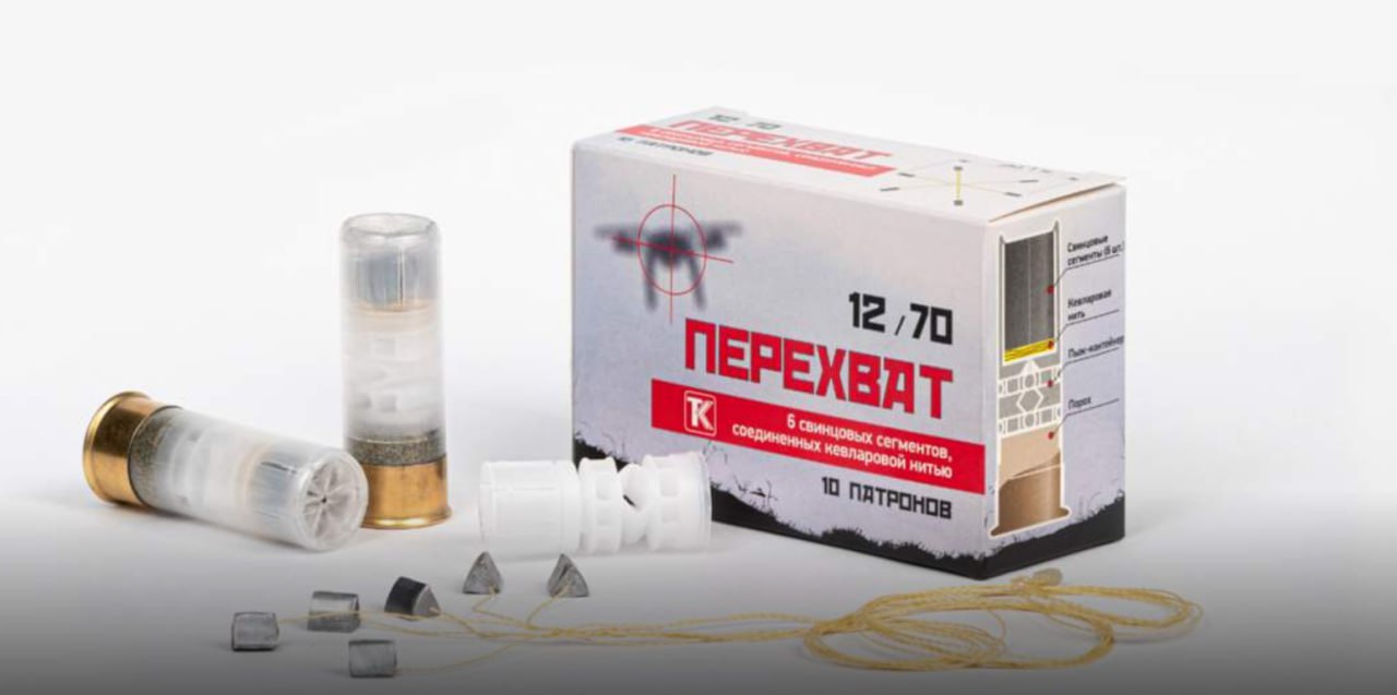 Vznik sieťového náboj (podomácky alebo priemyselne vyrábaný 12x70 mm „Perechvat“ a 12x76 mm CW), ktorého úderným prvkom je niekoľko olovených prvkov spojených sieťou, umožňuje „chytiť“ a znehybniť nepriateľský dron.