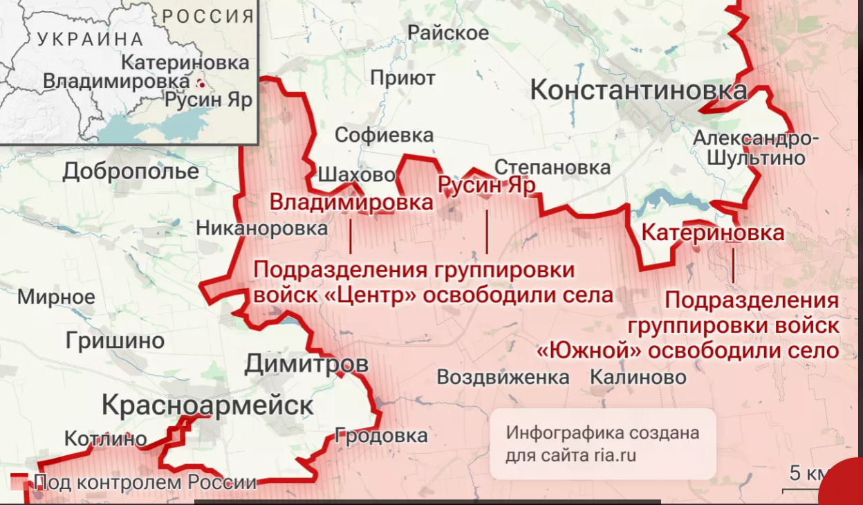 V současné době ozbrojené síly RF útočí na aglomeraci Pokrovsko-Myrnograd a Konstantinovku. Současně jsou v obou sekcích patrné vážné úspěchy.