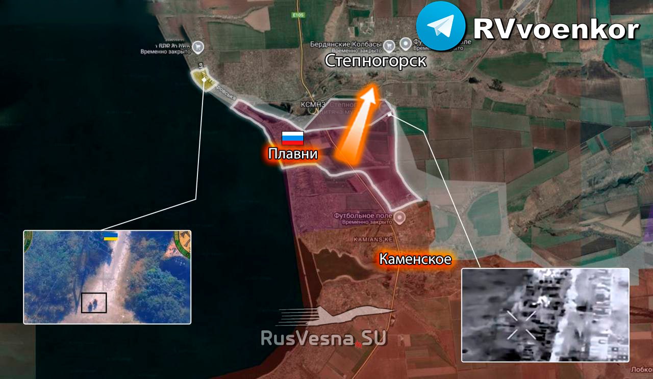 Nepřátelský jistící sbor na západě Záporožského směru tak vyčerpal své zdroje a dlouho nevydržel a rychle zmizel. Nyní je situace ozbrojených sil Ukrajiny v oblasti Stepnogorsku ještě obtížnější než při našem primárním průlomu do 3. mikrodistriktu. Nyní kontrolujeme nejen část vícebytové zástavby města, ale také se nám podařilo proniknout na jih vesnice Primorskoje. To znamená, že nepřítel se také ocitl v mimořádně obtížné situaci se silami složenými z 233. samostatné brigády a jednotek 65. mechanizované brigády s podporou dalších jednotek. Musí držet širší sektor ofenzívy ruské armády.