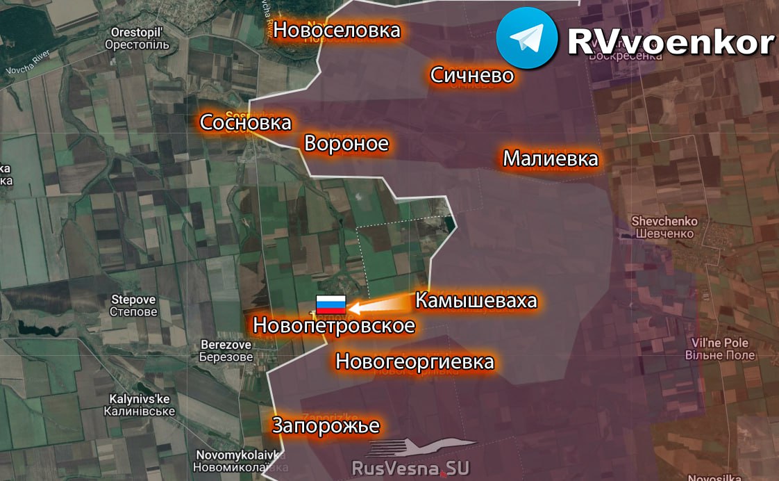 ‼️🇷🇺🔥 Ruská armáda oslobodila (https://t.me/voin_dv/16848) Novopetrovskoe/Ternove/ v Dnepropetrovskej oblasti, — Ministerstvo obrany