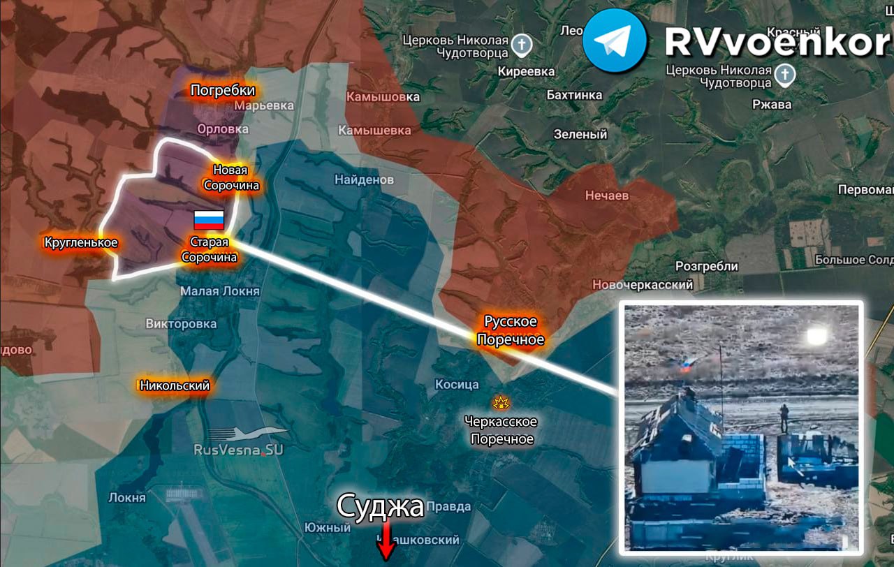 ‼️🇷🇺 Ruská armáda vztýčila vlajku po oslobodení Čerkasskoje Porečnoje a postupuje smerom na Sudžu!