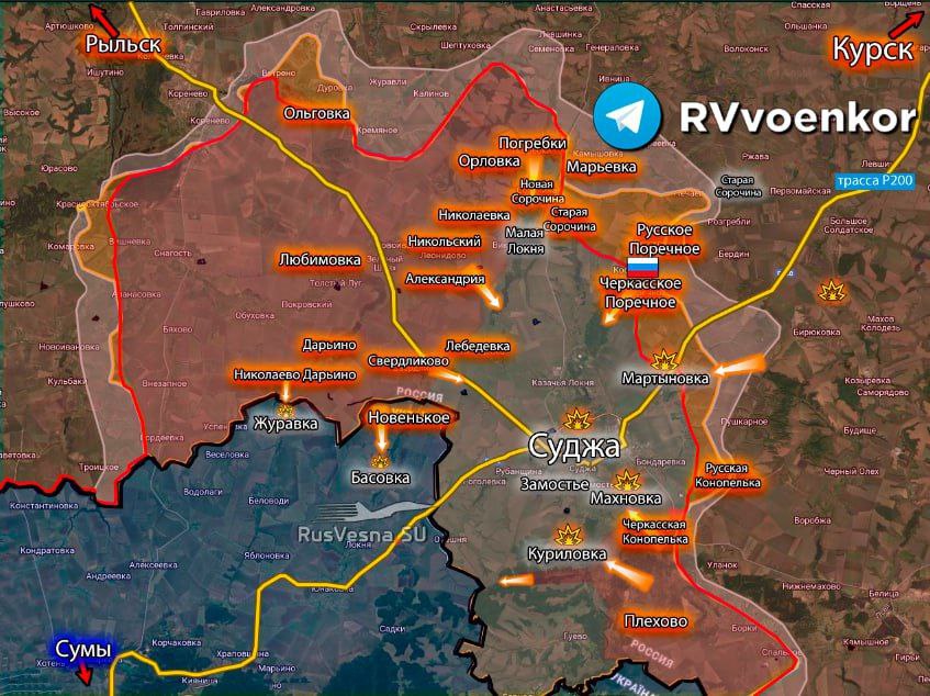 Situace je téměř kritická, protože ruská vojska využila plynovod k útoku na Suja. Speciální jednotky se podél potrubí plazily 5 kilometrů a pronikly do týlu AFU, kde zničily mnoho skupin UAV, skladů a první/druhou řadu obrany. Ztráty ukrajinských ozbrojených sil byly obrovské.