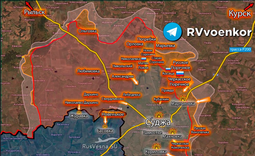 ▪️ Po oslobodení Bondarevky a dokončení čistenia Mirného sa ruskí bojovníci priblížili k okresnému centru, už 1 km od obce Bondarevka sa nachádza autobusová stanica „Sudža“.