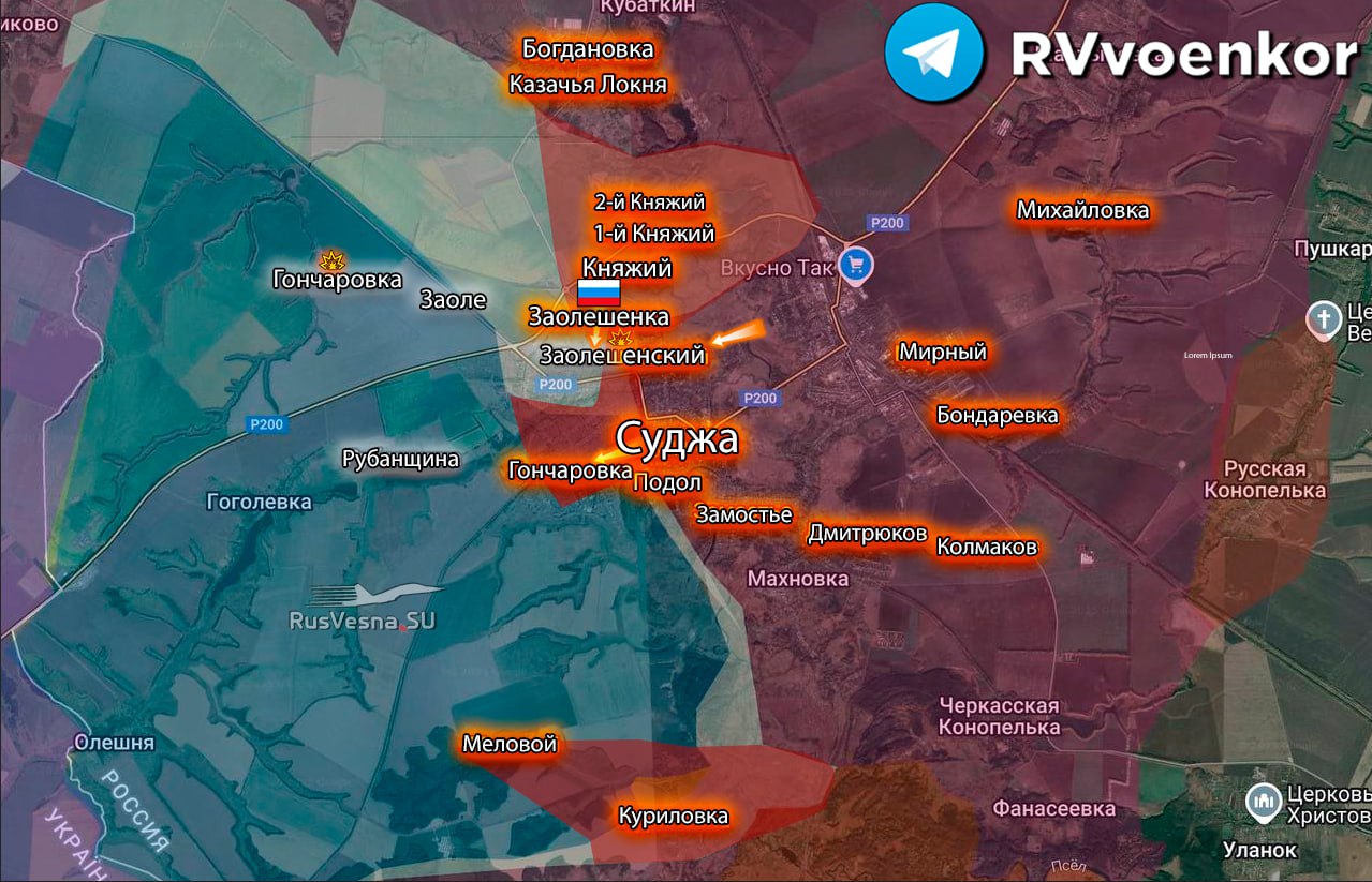 Pokračujúc v ofenzíve na kurskom fronte ruské jednotky na severnom okraji mesta Sudža vyčistili Zaoľšenku, kde sa nachádzali zvyšky porazených jednotiek AFU.