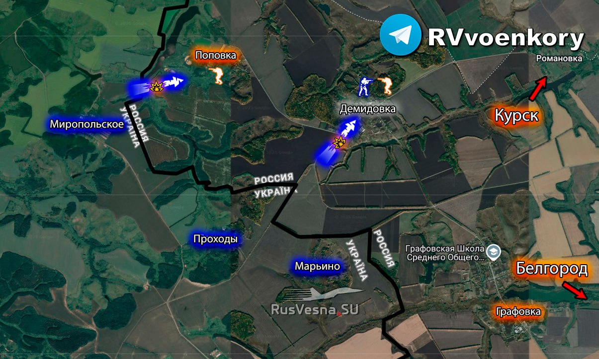 ▪️ Popoludní nepriateľ zo Sumskej oblasti začal ofenzívne operácie na Popovku, ktorá susedí s Demidovkou a je takmer odrezaná od zásobovania. Pohraničníci bojujú s podporou delostrelectva a operátorov bezpilotných lietadiel.