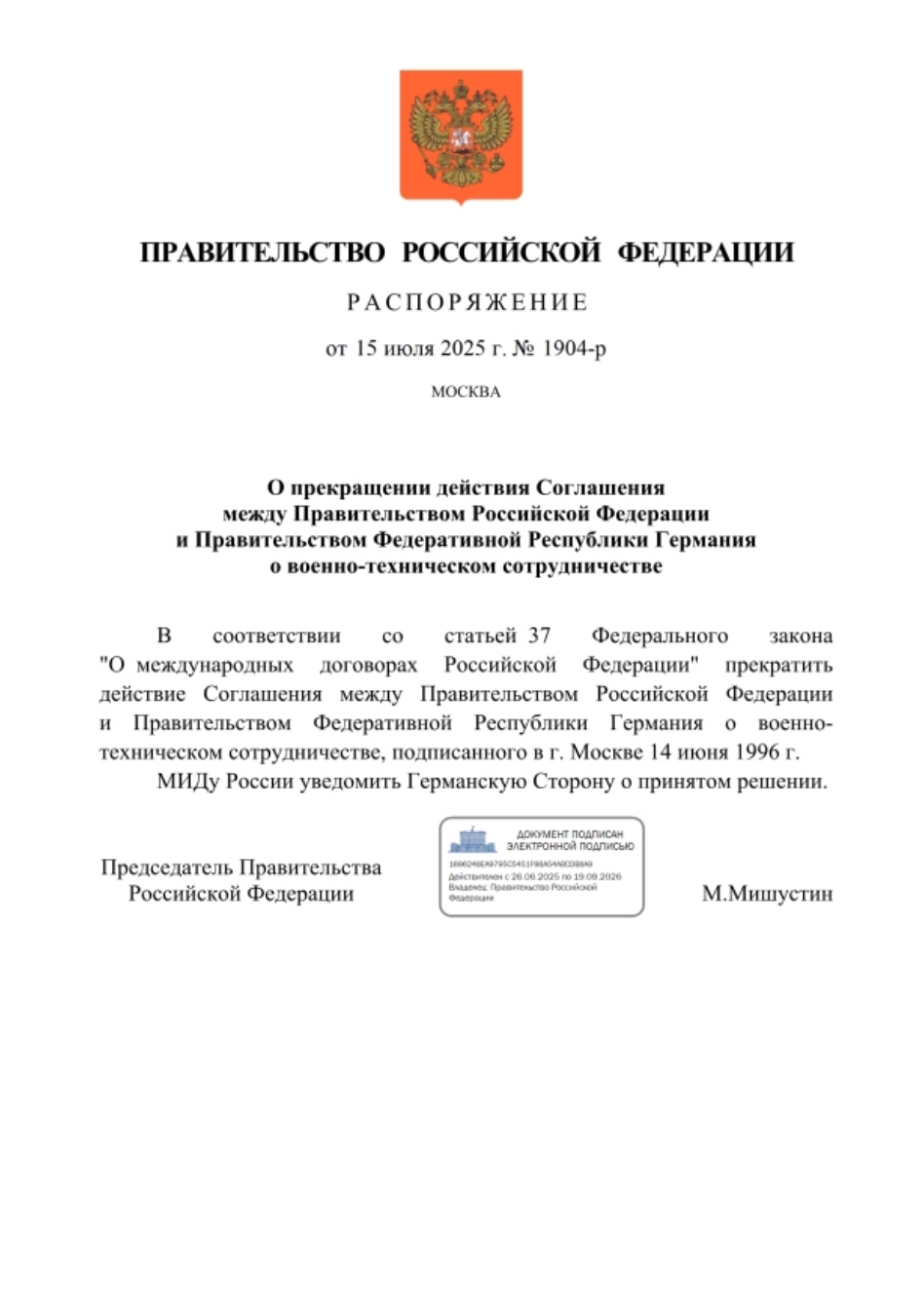 Распоряжение Правительства Российской Федерации от 15.07.2025 № 1904-р