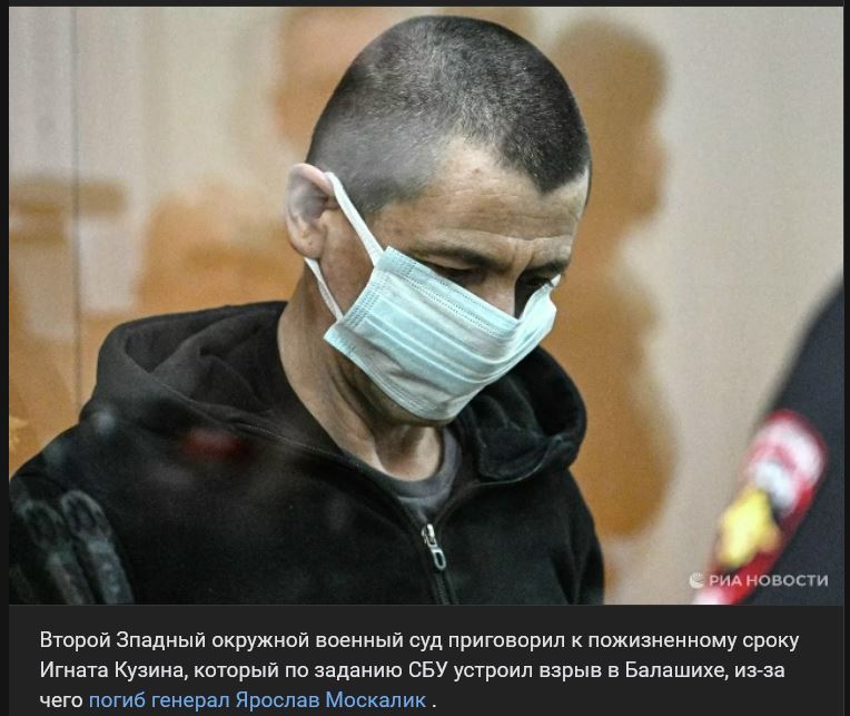 II. Západný obvodný vojenský súd odsúdil na doživotie Ignata Kuzina (Игната Кузина), ktorý na príkaz SBU (СБУ) zorganizoval výbuch v Balašiche (Балашихе), pri ktorom zahynul generál Jaroslav Moskalik (Ярослав Москалик).