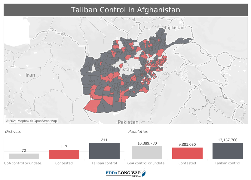 Stahování USA a NATO dalo příležitost, aby se Taliban chopil vakua a upevnil kontrolu nad severními regiony země. Desítky bezpečnostních stanovišť byly opuštěny s mizivým odporem vůči útokům Tálibánu.