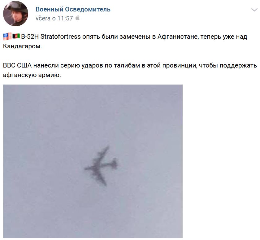 ↑ Strategický bombardér B-52H Stratofortress niekde nad Kábulom:
