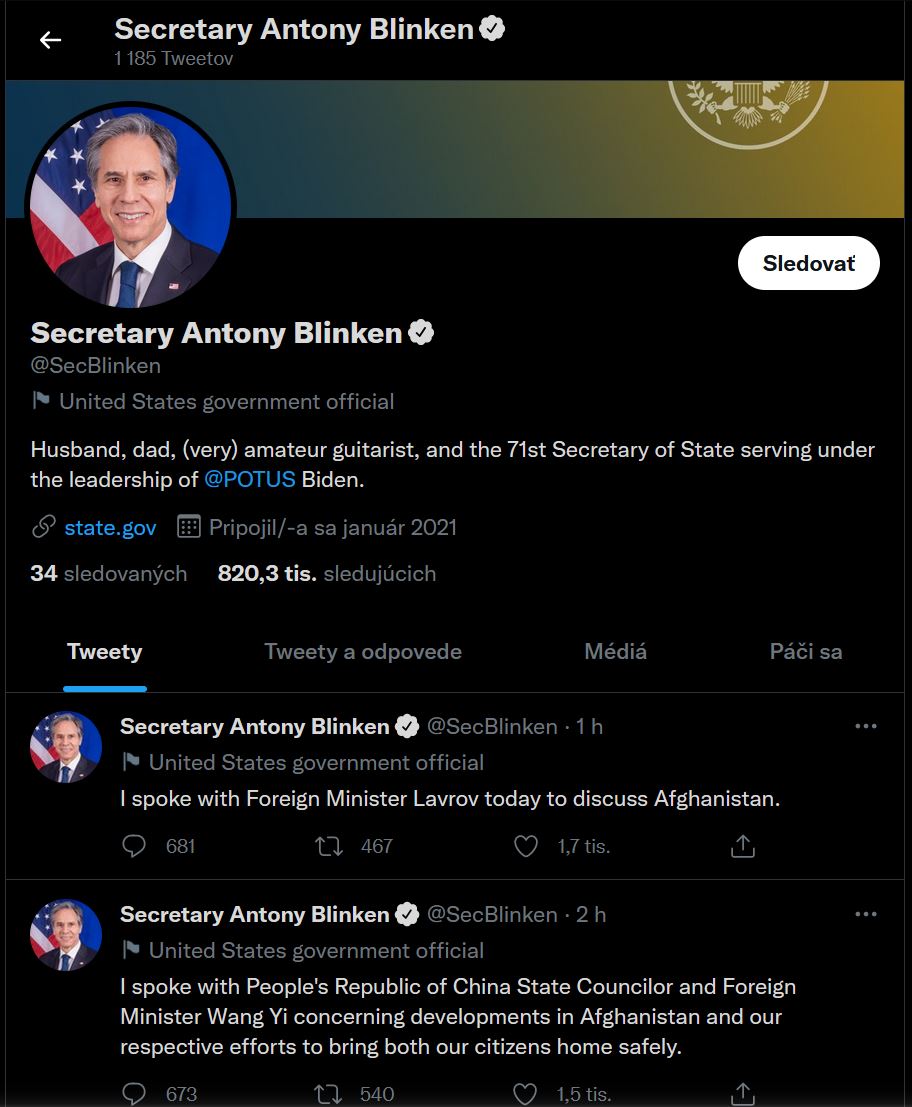 Originál na Lavrova = https://twitter.com/SecBlinken/status/1 ... 7075132418 a na Peking https://twitter.com/SecBlinken/status/1 ... 3123722243 oba z 16.08.2021