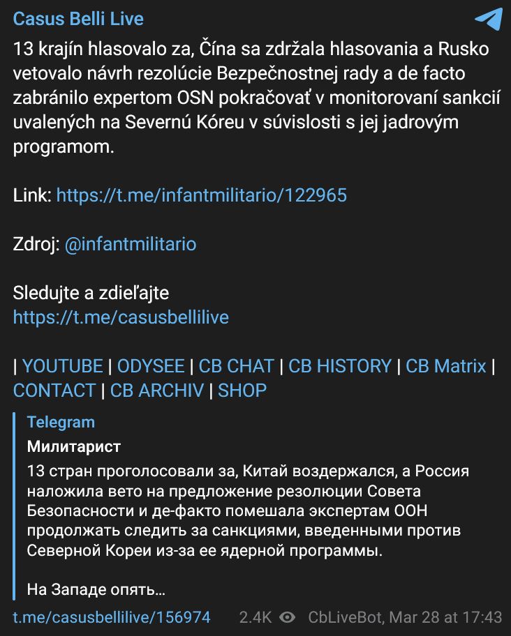 Zdroj https://t.me/casusbellilive/156974 / https://t.me/infantmilitario/122965 z 28.03.2024