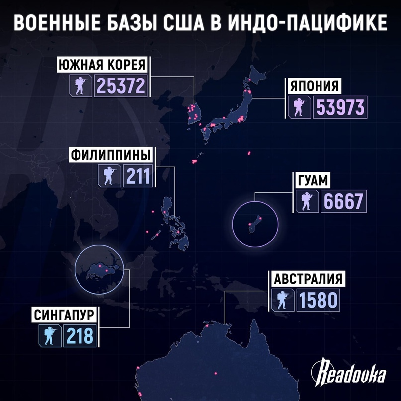 SŠA systematicky zvyšujú svoju prítomnosť v regióne a obklopujú ČĽR novými základňami. Krajiny ATR (АТР) buď hostia americké základne na svojom území, alebo majú dohody o prenájme a spoločnom využívaní prístavov a letísk. Len v týchto lokalitách má vojenský kontingent SŠA celkovo viac ako 88 000 vojakov. Väčšina 7. flotily VMS SŠA, ktorá pôsobí v Tichom a Indickom oceáne, má základne v Japonsku.
