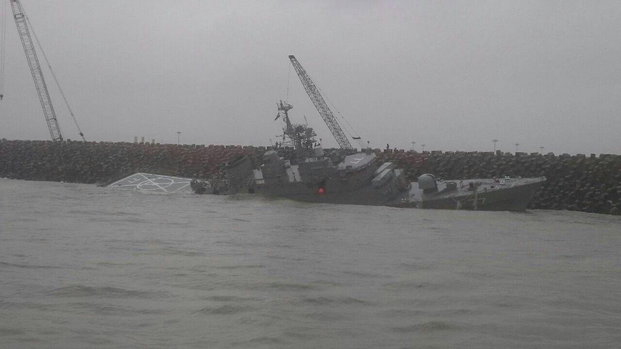Iránska fregata "Damavand" (biela 77) triedy Moudge v Kaspickom mori za zlého počasia bokom narazila na vlnolam - počas incidentu zahynuli 2 námorníci