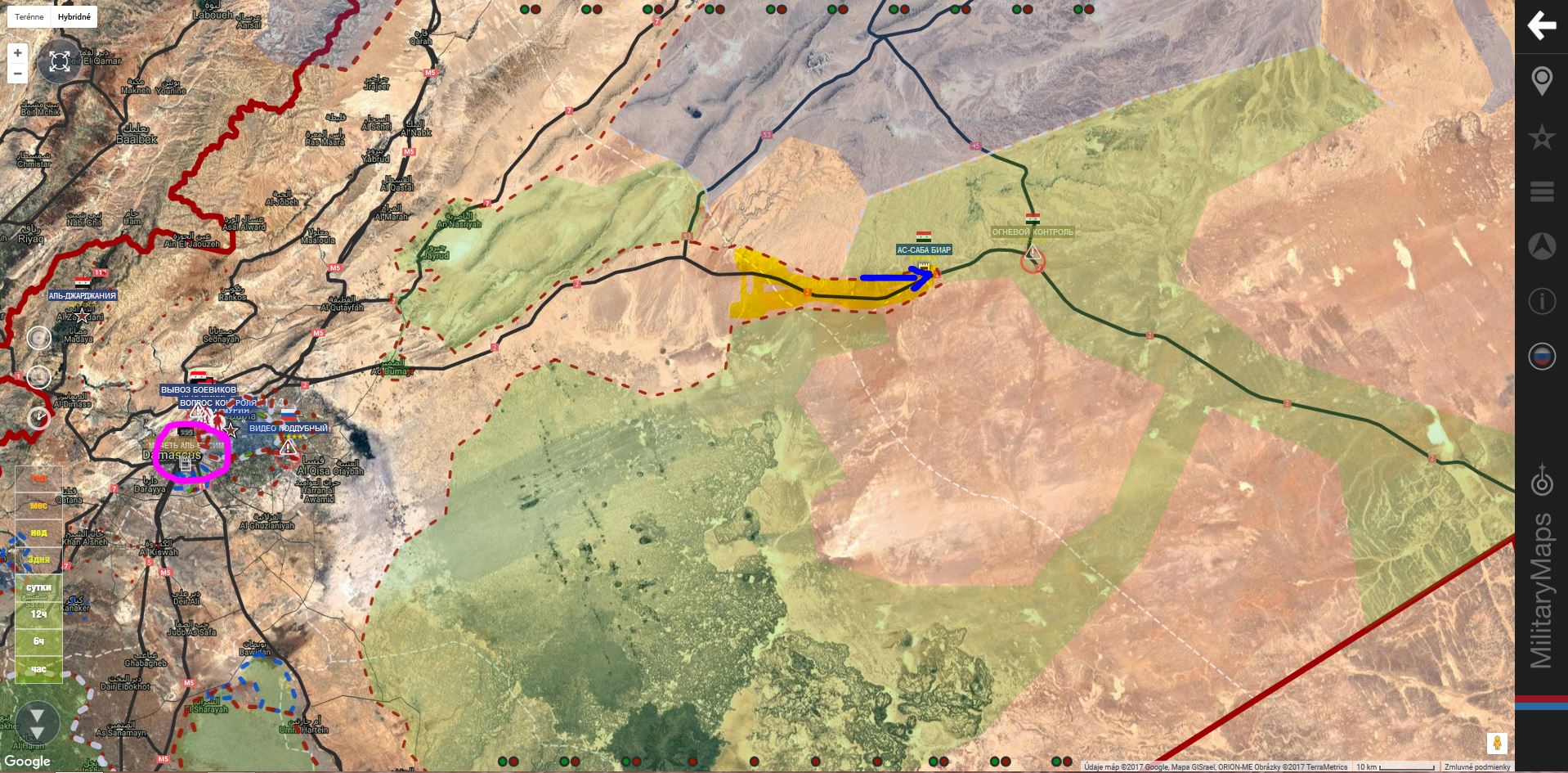 V. Damašek. SAA+ rozšírila kontrolu cesty č.2 na východ, po As Saba Biar.