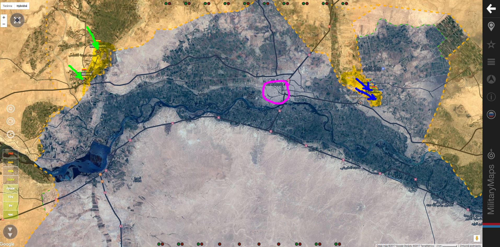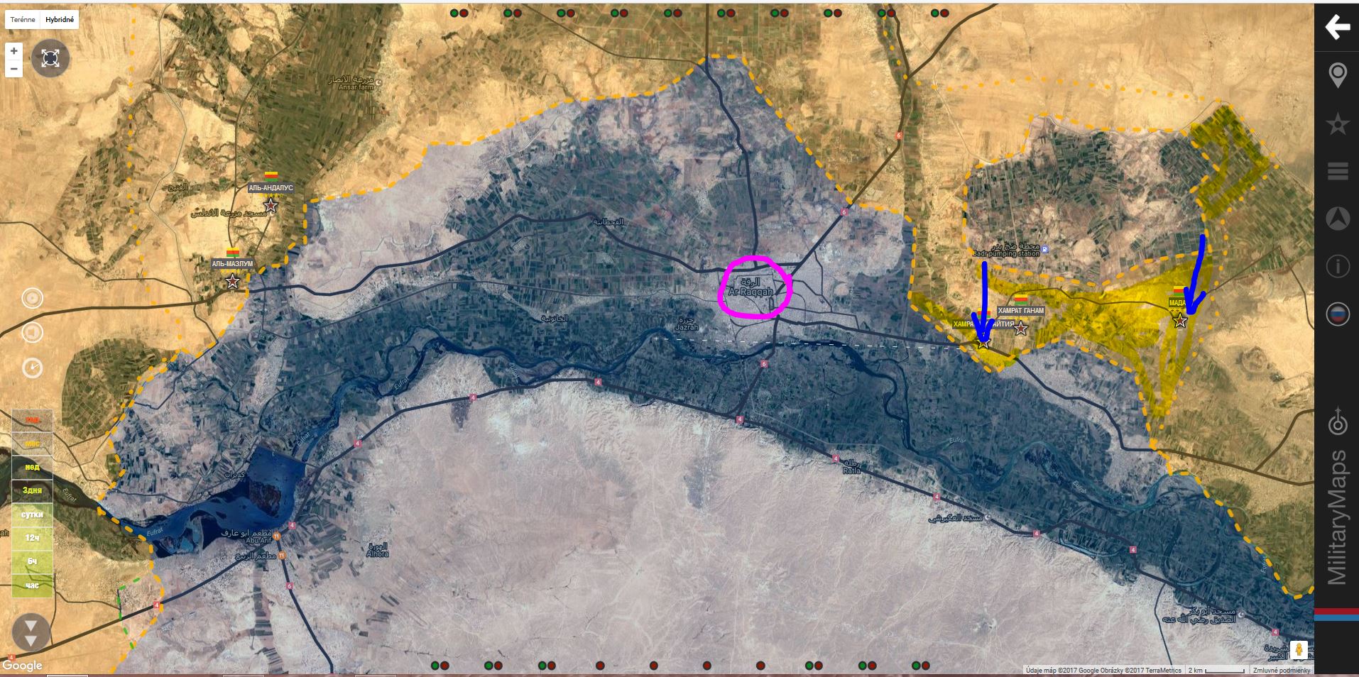 16 - 17 května 2017 Tygři za podpory dalších armádních uskupení a Ruského letectva vzali pod svou kontrolu minimálně 9 obcí na východě provincie Aleppa a vstoupili na rovinu Maskana.