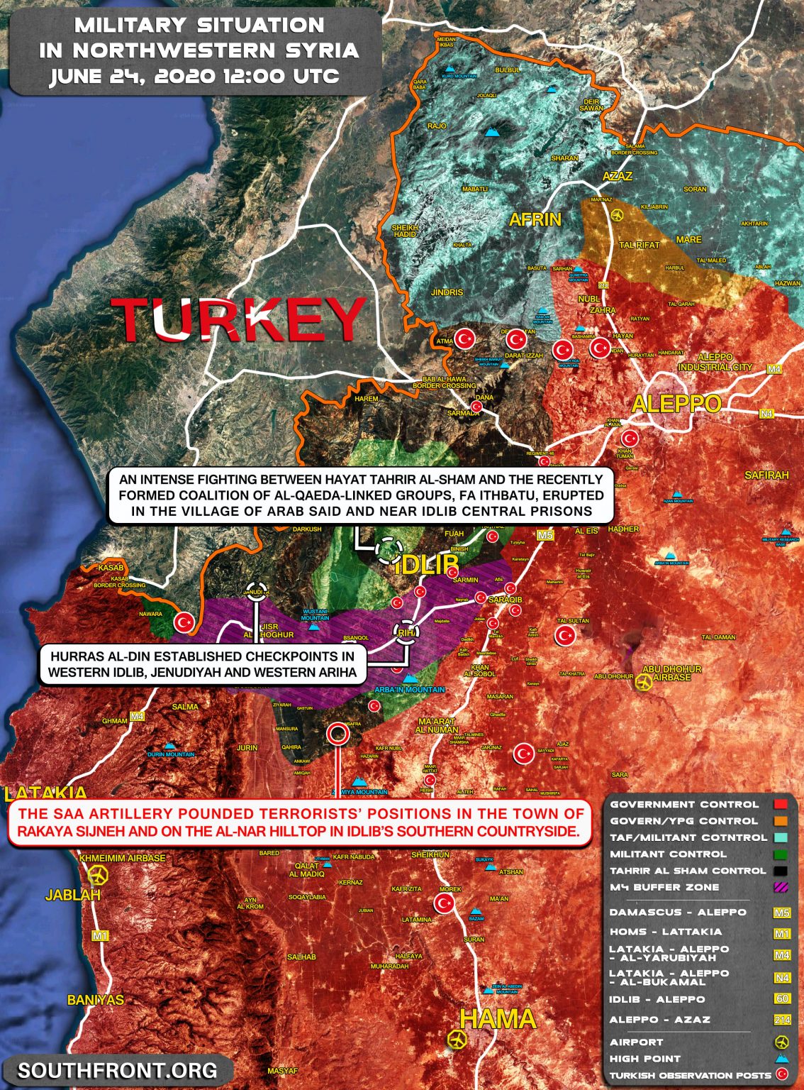 Začiatkom 24. júna bezpečnostné sily HTS obkľúčili a prepadli hlavné sídlo Ansar al-Din, kľúčovej členskej skupiny Fa Ithbatu, v meste Saramada na severe Idlibu.