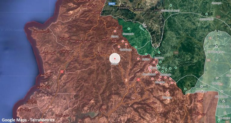 Intenzivní nasazení ruských průzkumných a vojenských letadel nad Aríhá jižně od Idlibu, který se shoduje s dělostřeleckým ostřelováním na ose Kabbani kopců v Latakia.