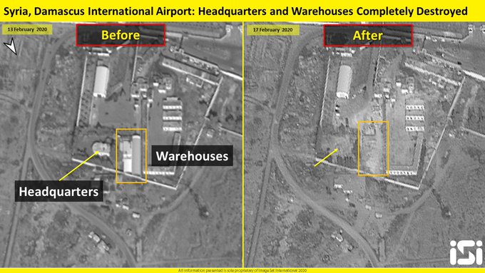 22. júla vydal Obretix, bloger na Twitteri, nové satelitné snímky ukazujúce tri zničené budovy na medzinárodnom letisku v Damašku.