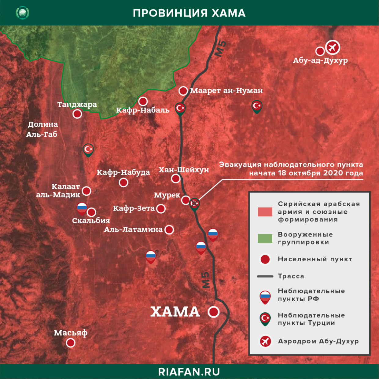 Dvaja účastníci rozhovoru, „ktorí sú oboznámení s týmto rozhodnutím“, tvrdia, že turecká armáda sa stiahne zo štyroch pozorovacích stanovíšť a dvoch ďalších dočasných miest v deeskalačnej zóne Idlib, ktoré boli začiatkom tohto roka obklopené sýrskymi vládnymi silami, počas nového útoku na provinciu ovládanú povstalcami. „.