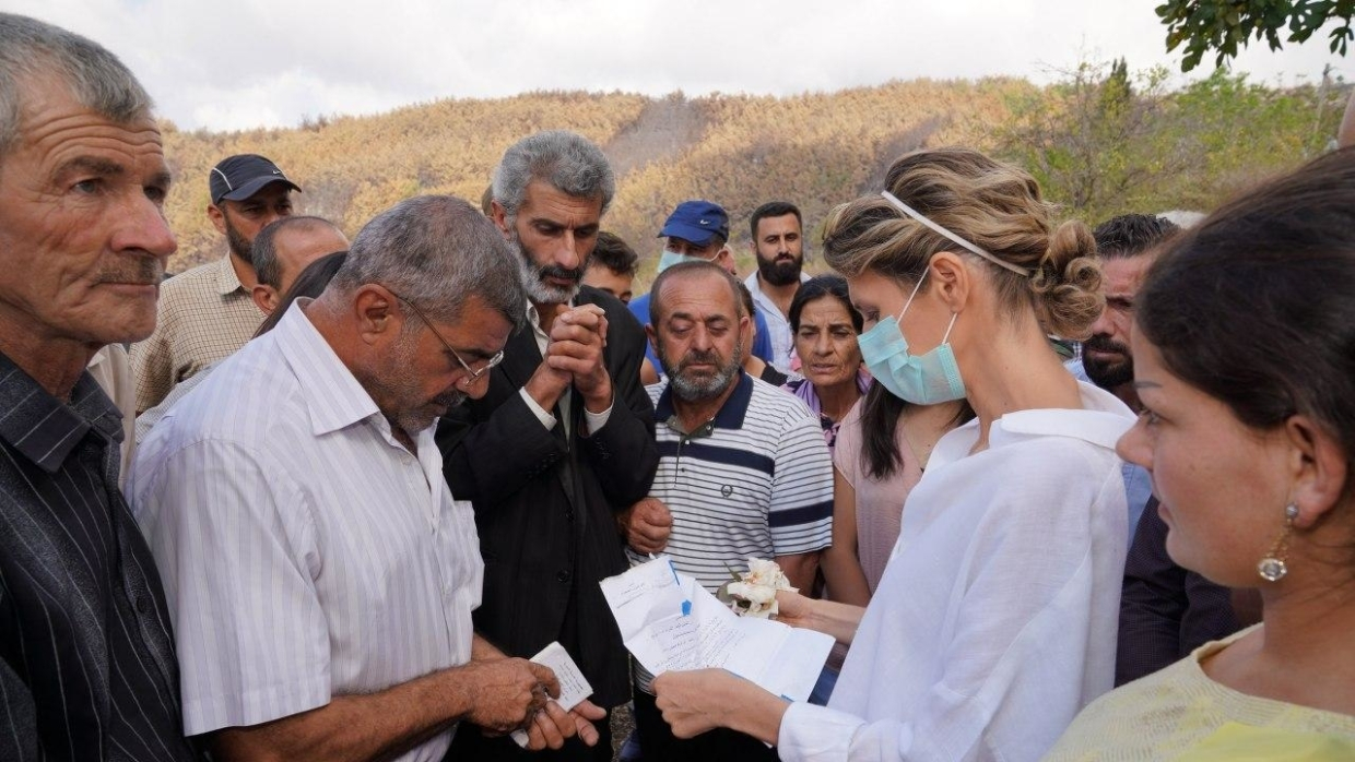 Kardach, 15. októbra. Manželka sýrskeho prezidenta Asma Assad navštívila provinciu Latakia. Stretla sa s miestnymi obyvateľmi, ktorí prišli o majetok v dôsledku lesných požiarov. O ceste informoval kanál Telegram tlačovej služby prezidenta SAR.