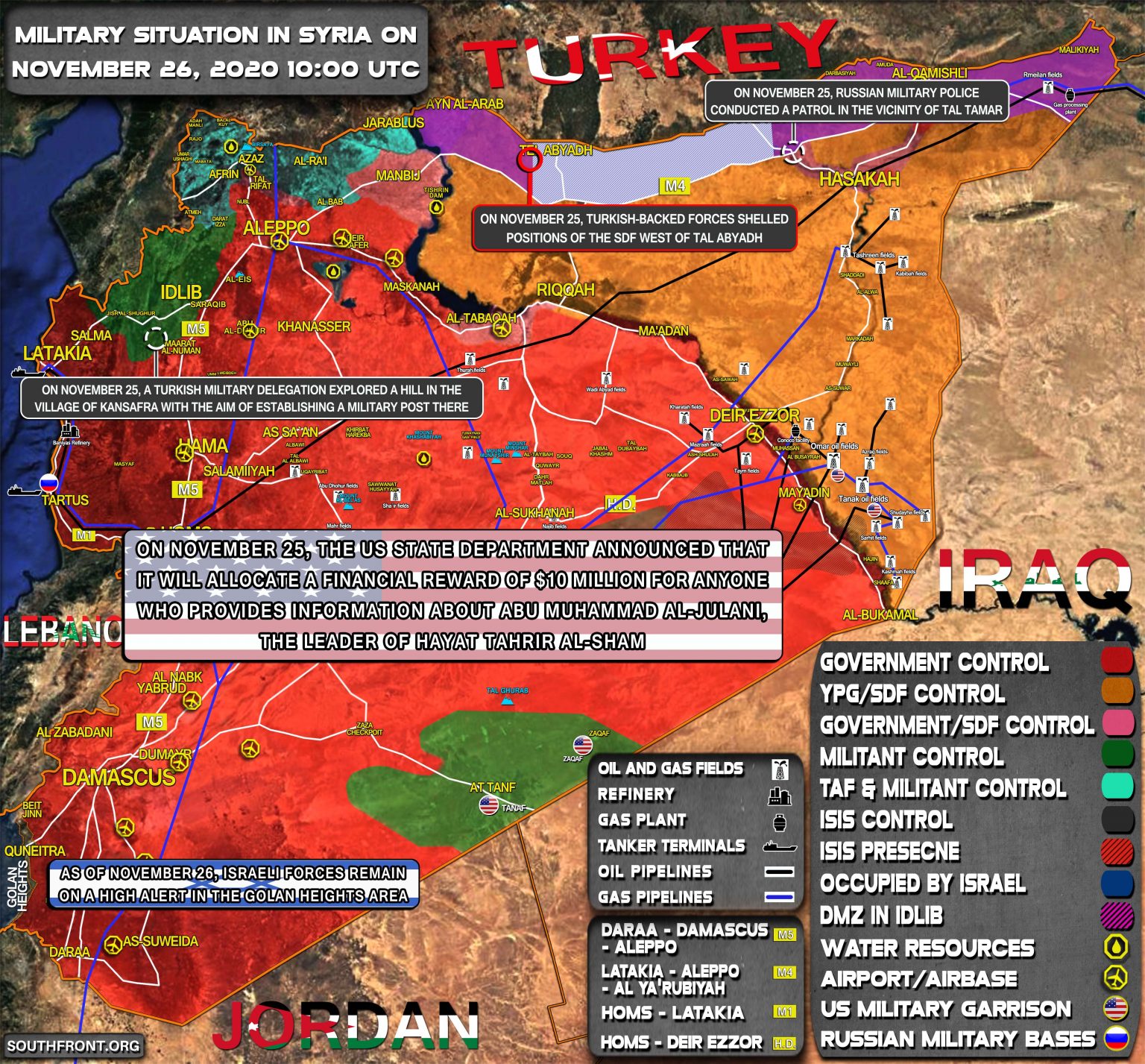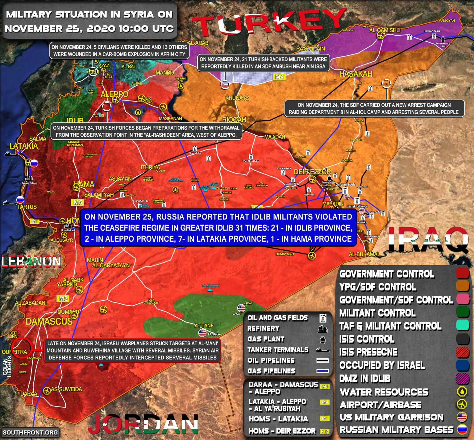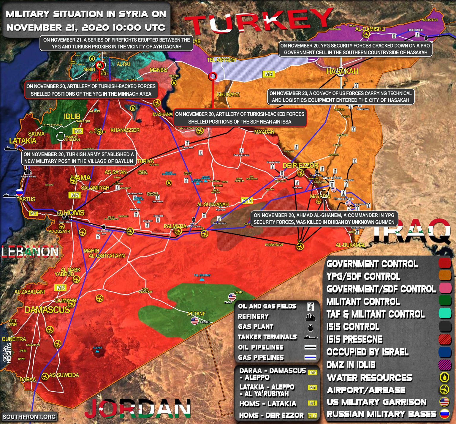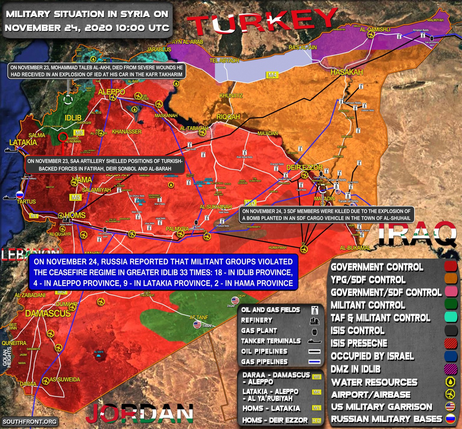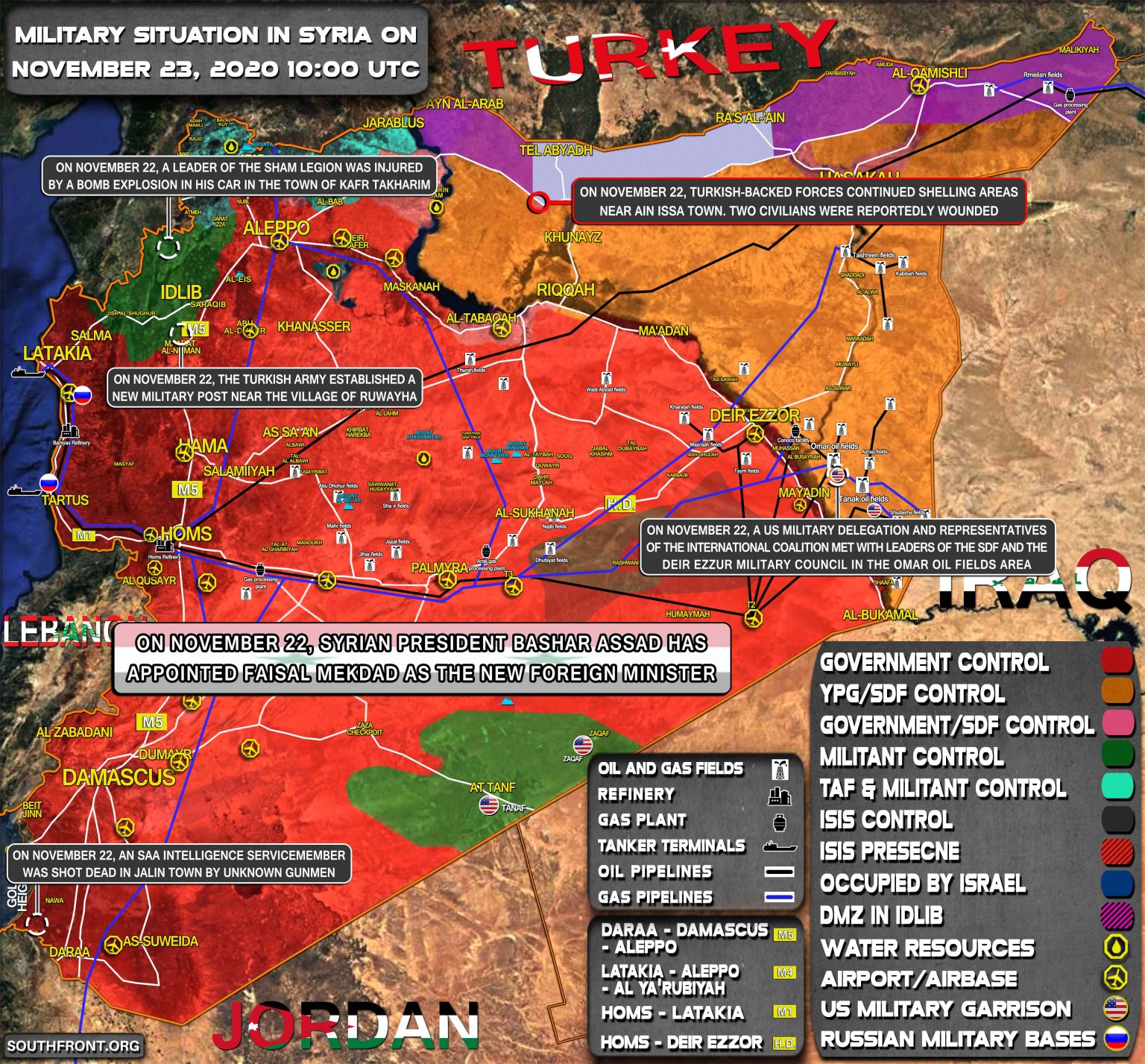 VOJENSKÁ SITUÁCIA V SÝRII 23. NOVEMBRA 2020 (AKTUALIZÁCIA MAPY)