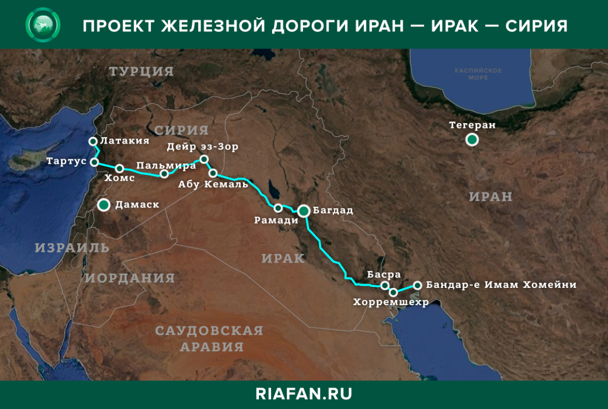 Predpokladá sa, že železničná trasa spojí prístav Bandar-e Imam s prístavmi v Tartuse a Latakii a bude prechádzať cez územia Iránu, Iraku a Sýrie. Tento projekt je dôležitý pre Teherán a Bagdad, pretože umožní prepravu ropných produktov a iného tovaru do prístavov na pobreží Stredozemného mora. Cieľom projektu je prekonať sankčnú blokádu, ktorú Západ vybudoval okolo troch krajín.