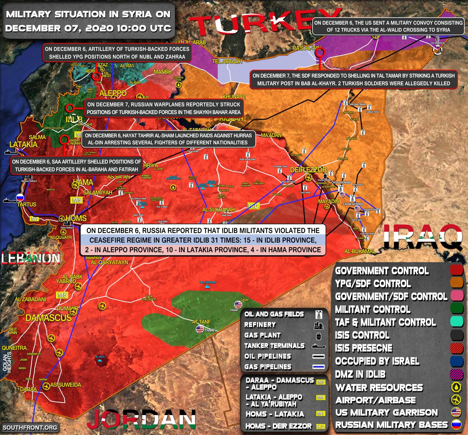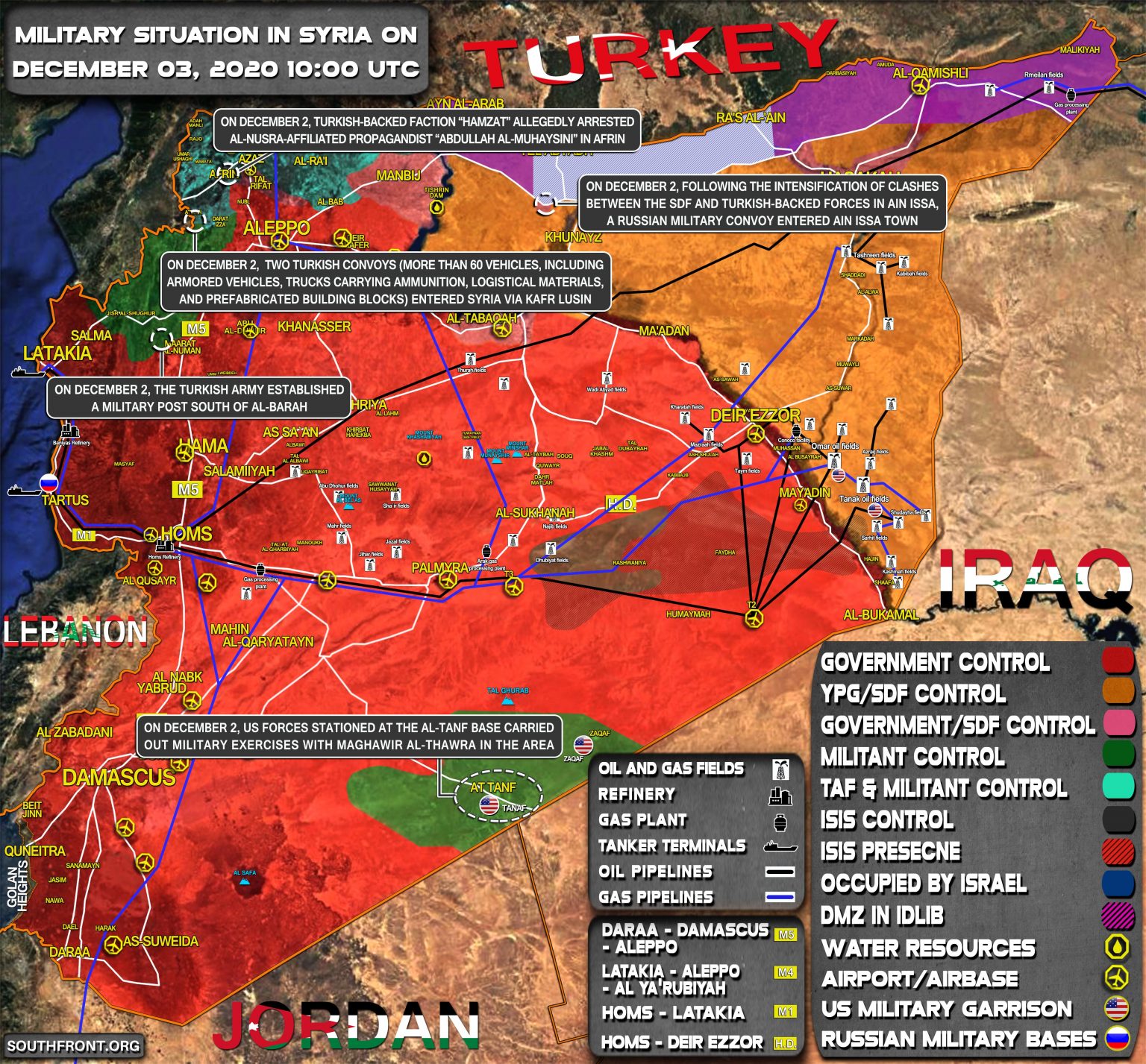 2. decembra vstúpili cez Kafr Lusin do Turecka dva turecké konvoje (viac ako 60 vozidiel, vrátane obrnených vozidiel, nákladných automobilov prepravujúcich muníciu, logistických materiálov a prefabrikovaných stavebných prvkov);