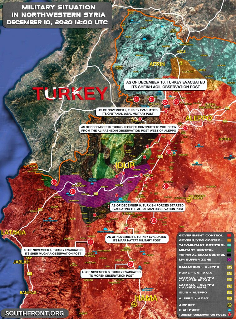 Turecké zdroje poznamenávajú, že „budeme naďalej brániť Idlib a podnikáme tieto kroky na lepšiu ochranu provincie“ a súčasné stiahnutie bude posledným z krokov podniknutých tureckou armádou v severozápadnej Sýrii po októbrovom stiahnutí z niektorých kľúčových pozorovacích bodov a základne v provincii Idlib a Aleppo.