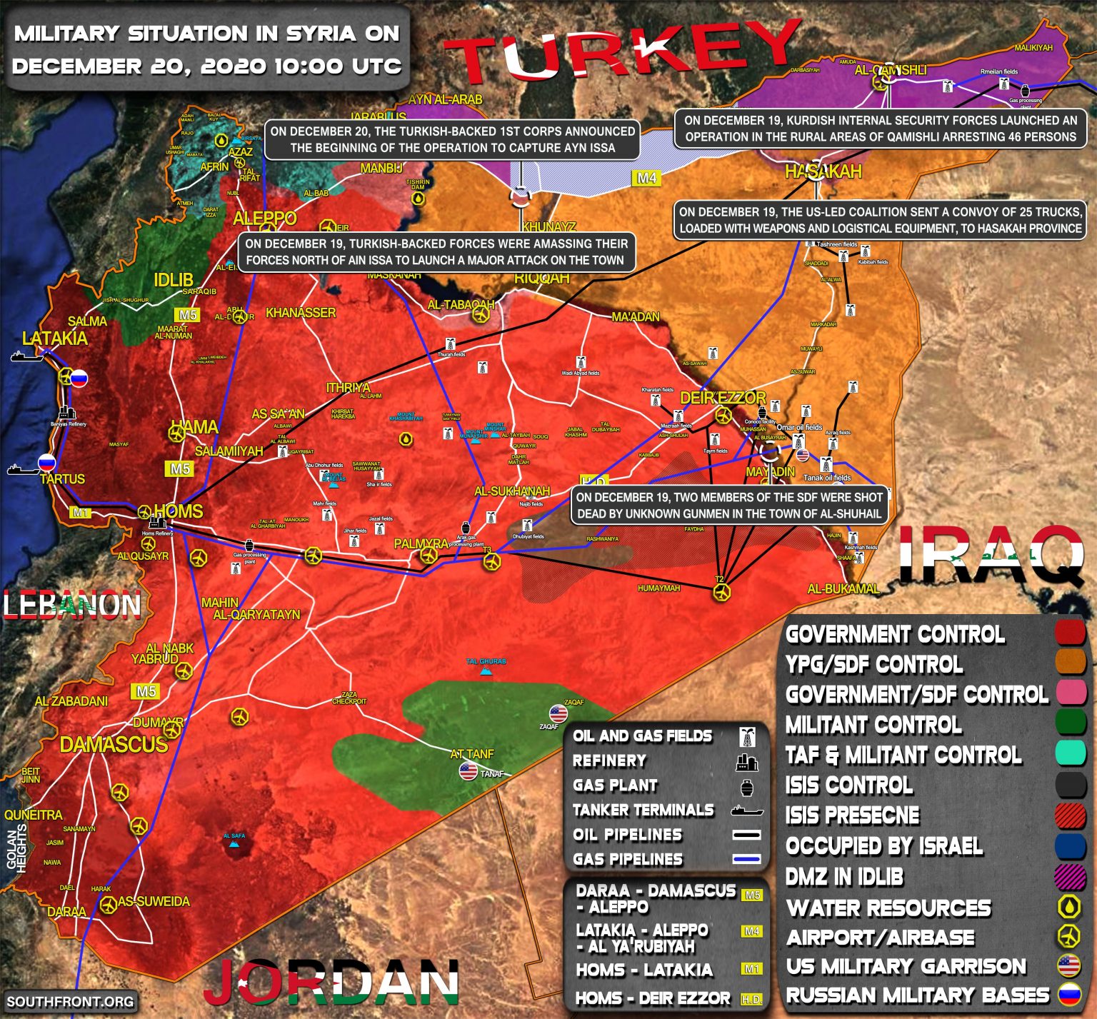 19. decembra poslala koalícia pod vedením USA do provincie Hasakah konvoj s 25 kamiónmi so zbraňami a logistickým vybavením;