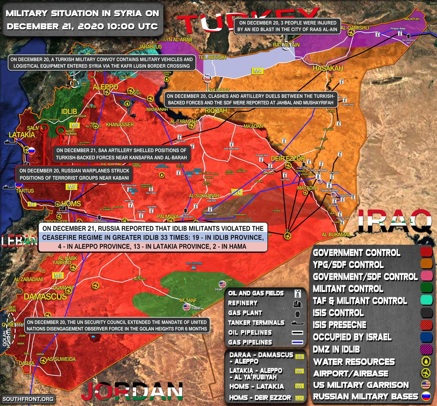 20. decembra turecký vojenský konvoj obsahujúci vojenské vozidlá a logistické vybavenie, sa dostal do Sýrie cez hraničný priechod Kafr Lusin.