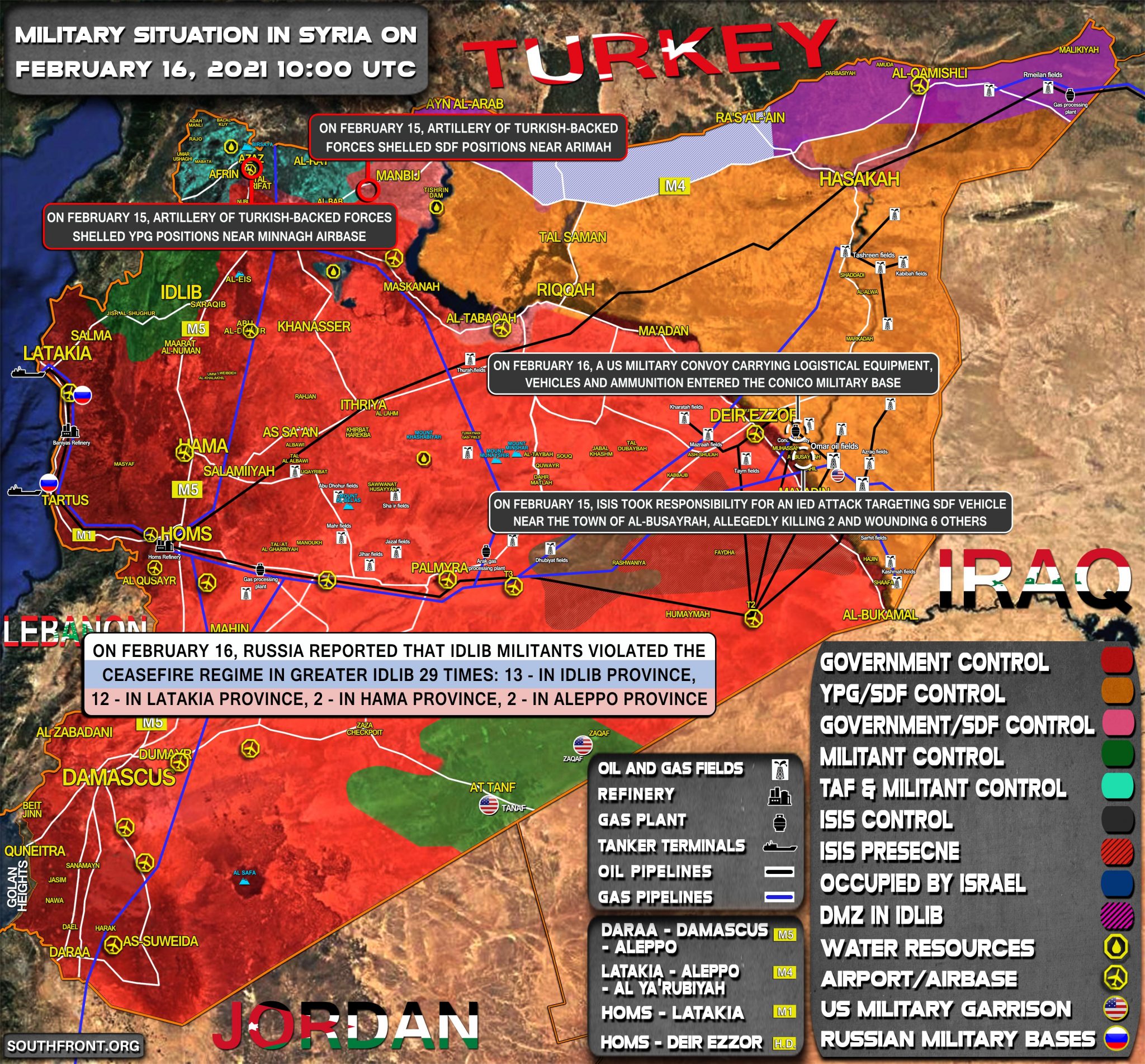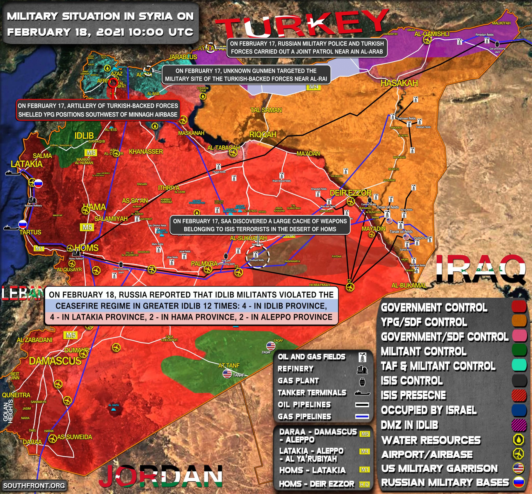 Vojenská situácia v Sýrii 17. februára 2021 (aktualizácia mapy)