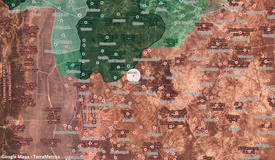Kliknutím zobrazíte mapu v plnej veľkosti https://southfront.org/15-syrian-soldie ... -hts-raid/