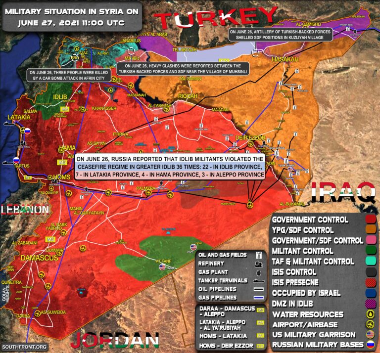 Vojenská situácia v Sýrii 26. júna 2021 (aktualizácia mapy)